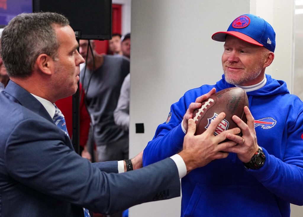 General manager Brandon Beane handed him the game ball after the KC win with a smiling owner Terry Pegula in the background.