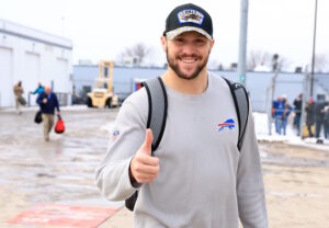 Josh Allen gets off the plane from Miami early Monday morning and looks up to see a huge crowd of Bills fans cheering from the
