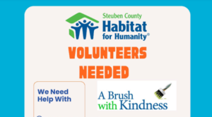 Register today to help flood relief vicitms with Habitat for Humanity From the Steuben County Habitat for Humanity, !!! The Brush with Kindness Event scheduled