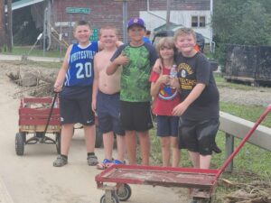 (Cutline: The kids who helped clean in West Union and Rexville are, from left, Logan Reisman, Kole Turner, Chase Freburg, Garrett Henry and Gabe Mullen
