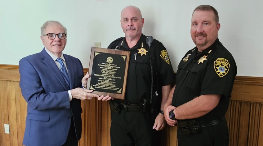 The honor was presented during a recent meeting of the Yates County Legislature. Executive Director Peter Kehoe of the Sheriff’s Association awarded the official reaccreditation plaque to Sheriff Frank Ryan and Undersheriff Brandon Jensen, while also presenting individual certificates to members of the agency.