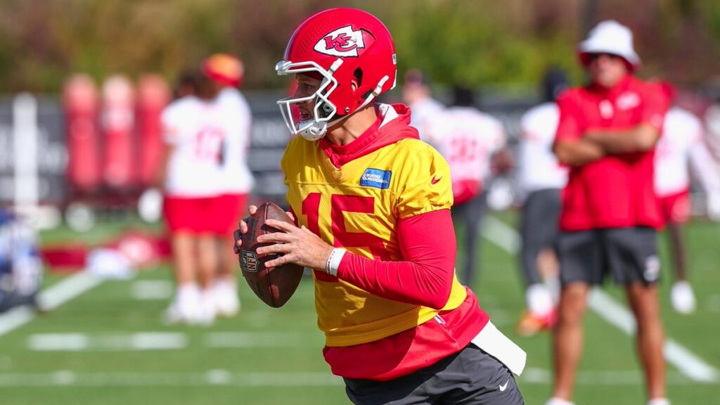 (Photo: Patrick Mahomes practicing this week outside to prepare for the Sunday late afternoon game in Buffalo. Kansas City Chiefs photo)
