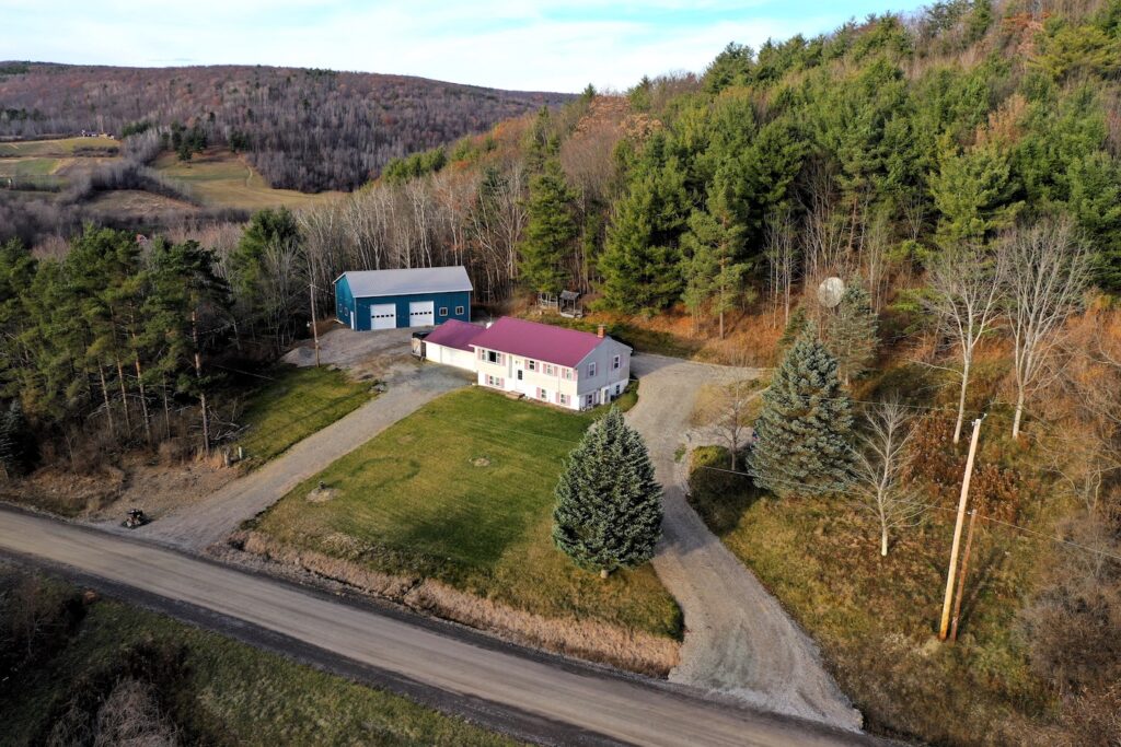 This 32 acre property includes a raised ranch home, garage, shop and a stocked pond located near Hornell NY, Steuben County.
