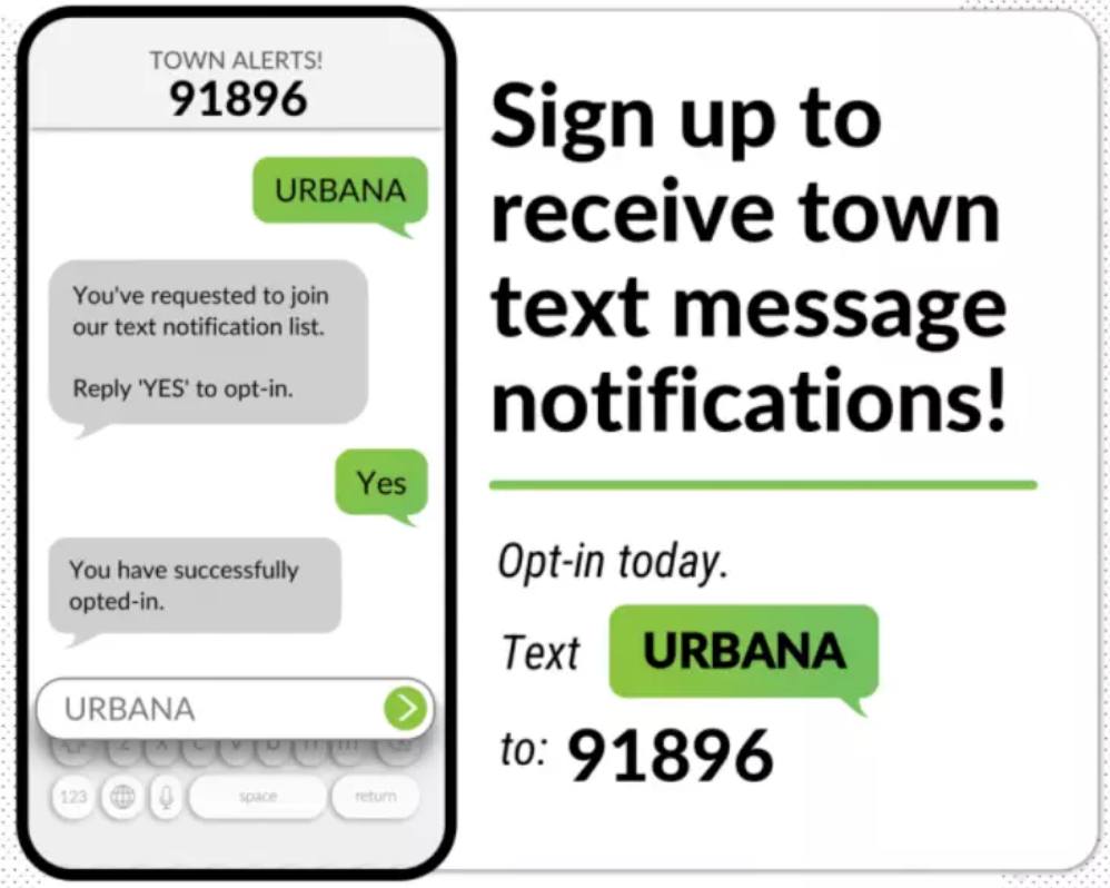 For anyone who wants better visibility, the town offers text alerts for meetings & updates. You can opt in by texting URBANA to 91896.