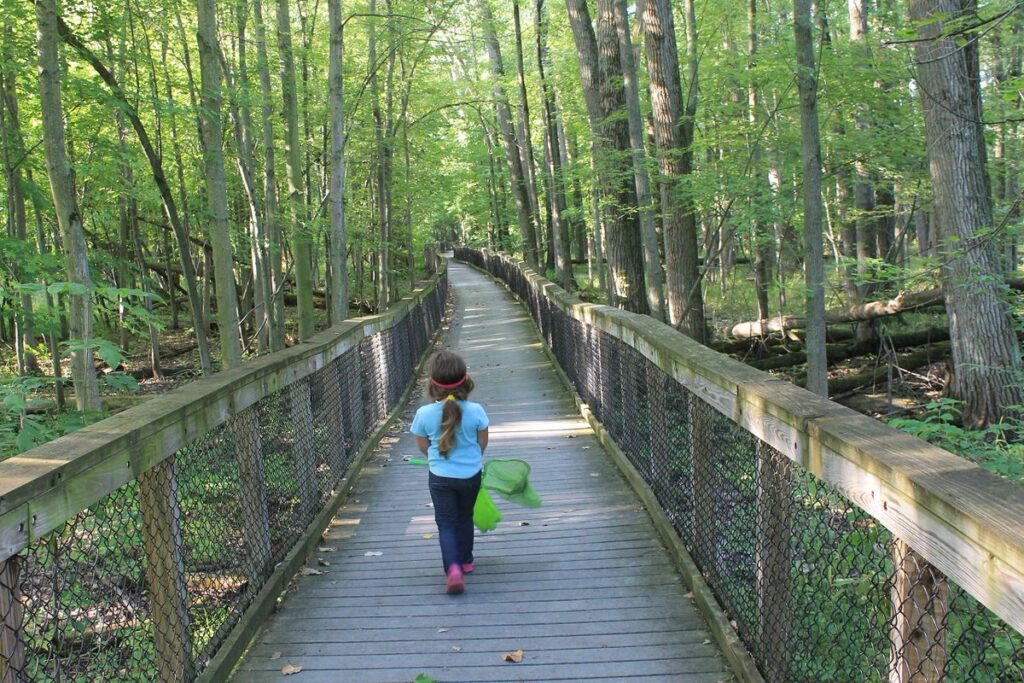 As you start your hike at the parking lot and head to your left, you will walk on a third of a mile of boardwalk that is raised 3 to 5 feet above the often-swampy forest floor. It is an engineering marvel, an outcome of an excellent partnership of government workers and volunteers. You won’t find any rickety planks, the walkway is flat and it is high-quality — protected on the sides by chain-link fencing and wooden rails. The forest underneath the boardwalk typically holds some water into early summer, providing vernal pools that are very important to baby frogs, toads, and salamanders.
