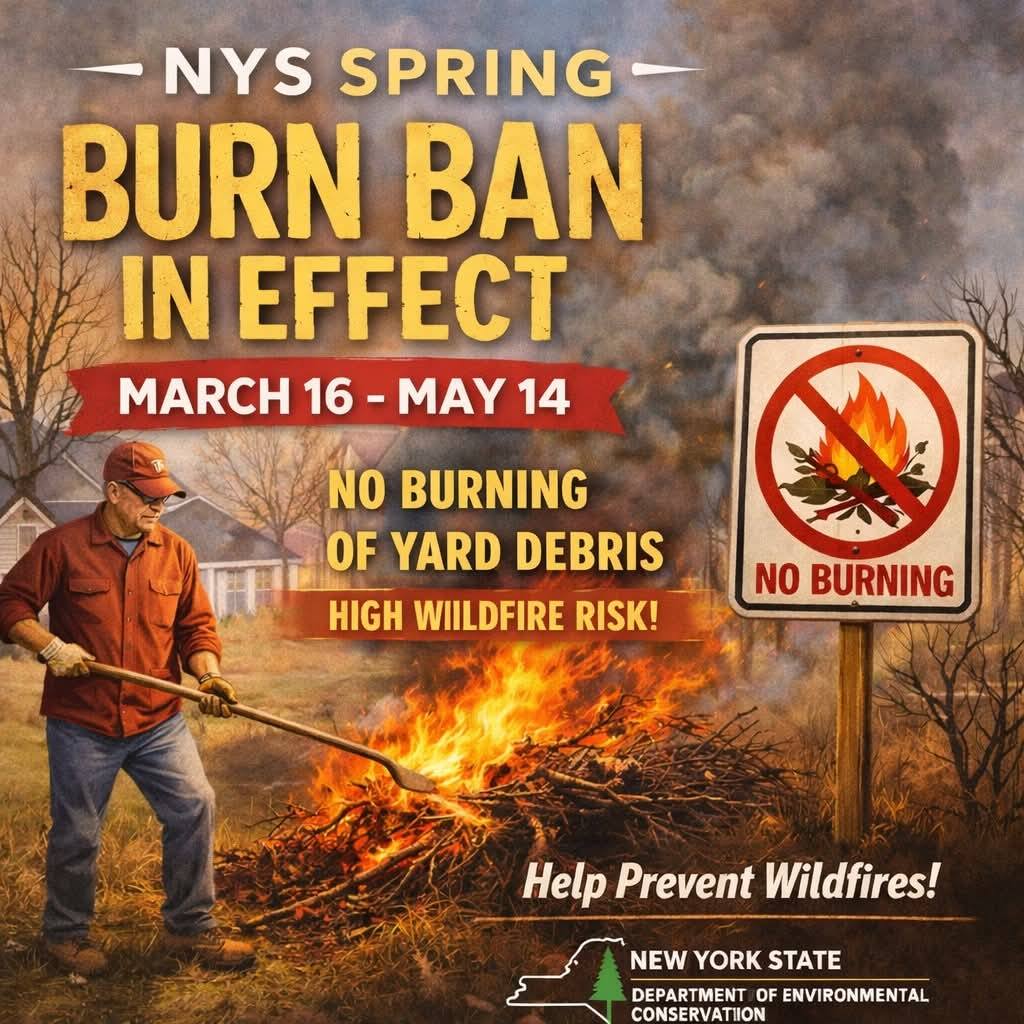 The annual New York State Burn Ban runs from March 16, 2026 through May 14, 2026. We’re sharing this early so everyone has time to plan ahead.