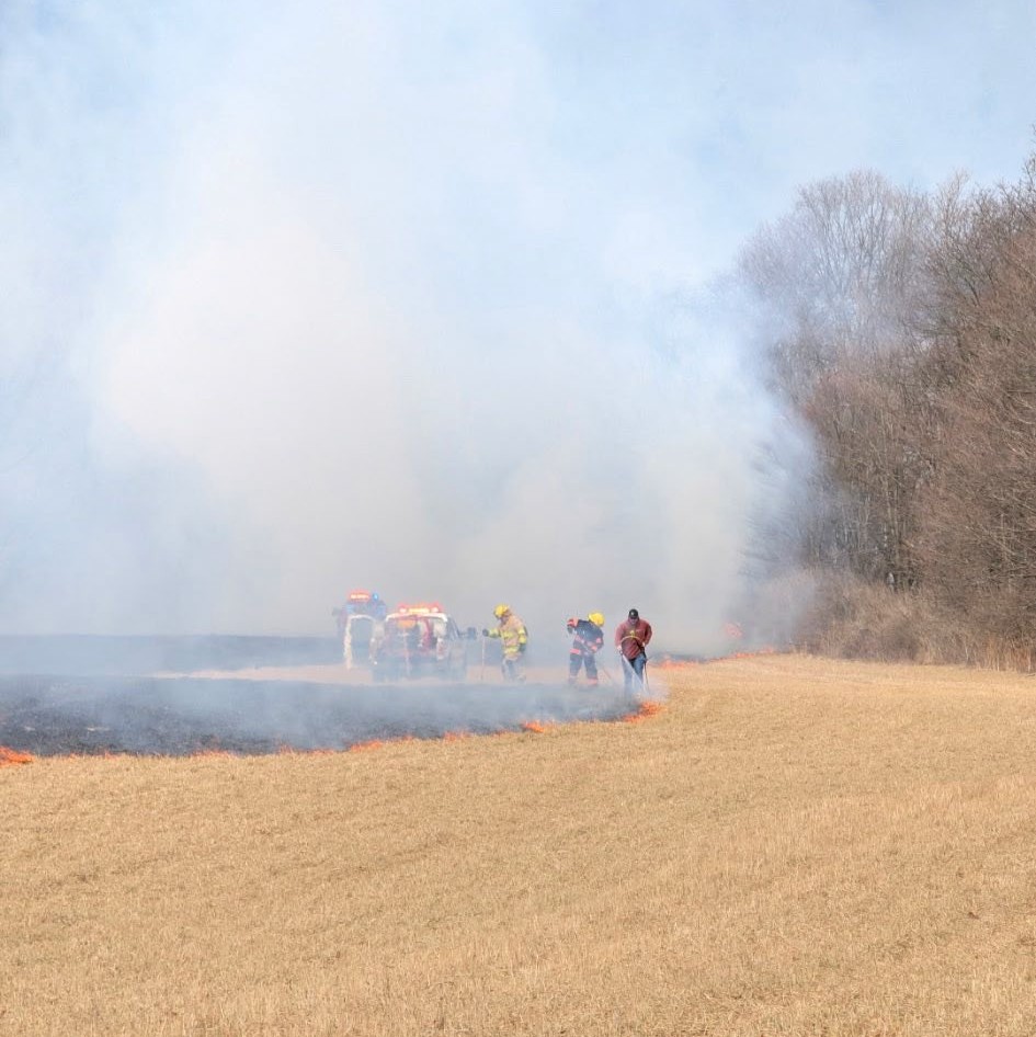 Within minutes, the wind picked up and the flames crossed the field, spreading rapidly. Fire crews worked quickly to contain the fire after approximately 11 acres had burned, preventing it from spreading into neighboring properties.