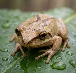 It’s truly amazing how much sound can come out of a creature so small. Spring peepers are three-quarters of an inch to an inch-and-a-quarter in length. They are wee animals, far smaller than their cousins, the toads and frogs (as a matter of fact, most frogs could eat them). They are light brown to grey with a dark diagonal cross or “x” on their back.