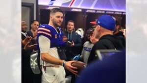 Steuben County Deputy Brent Nadjadi was recognized for his military service at the Buffalo Bills game From Alfred State College, ALFRED, NY, Dec. 20, 2023