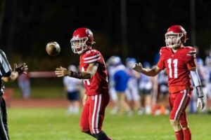 Beau Zeh (34) had the winning touchdown and Lucas Mason (11) had the game-saving interception for the Canisteo-Greenwood 6-0 victory for the Section V title