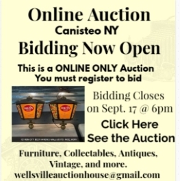 Register to bid today with the Wellsville Auction House This is an Online Auction which is open for bidding and will begin soft closing on