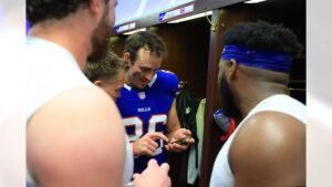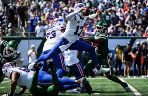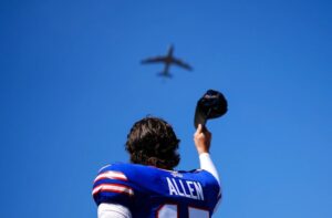 (Cuteline: Josh Allen had a low passer rating on Sunday, but gained 40 yards on this run and 59 for the game. Photo by Kostas