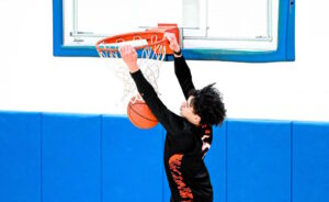 (Photo: Nicolas Germain-Tardeau throws down a dunk during the Wellsville win over Haverling Friday night in Bath, Ella Green photo) After a slow start to